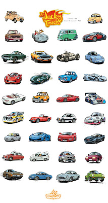 En solo los dos primeros tomos de la serie Ze Jacky Touch, he dibujado nada menos que 142 modelos de coche diferentes, entre protagonistas (86) y en los fondos, (56 perfectamente reconocibles).